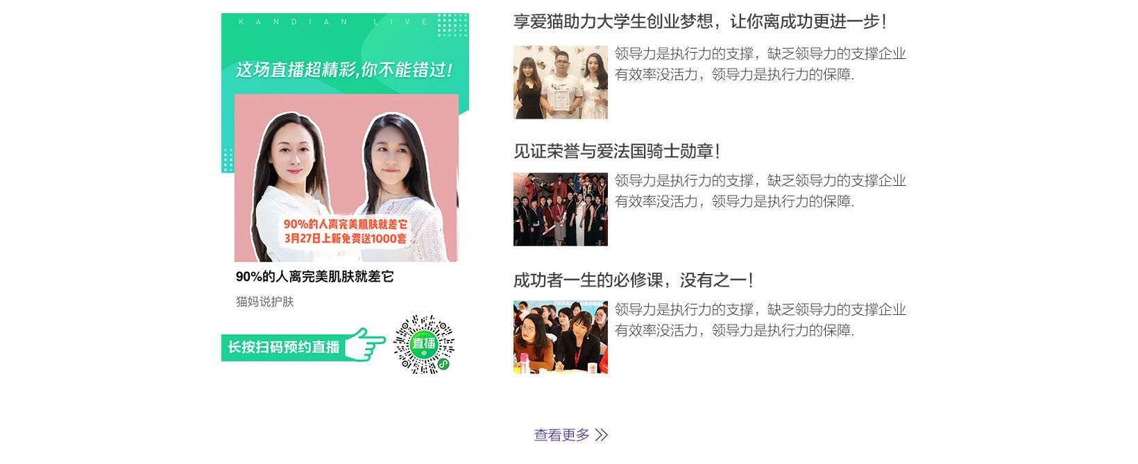 享愛(ài)貓品牌創(chuàng )始人總經(jīng)理 貓媽說(shuō)護膚直播間主播 留學(xué)美國,開(kāi)創(chuàng )了98后創(chuàng )業(yè)天使輪融資 1000萬(wàn)現金的先河,2019年法國騎士勛章獲得者。 把最好的護膚品分享給信任我們的人 帶著(zhù)這份初心創(chuàng )立法國享愛(ài)貓時(shí)尚科技護膚品牌 帶著(zhù)堅定的力量努力 令享愛(ài)貓成為社交新零售最值得驕傲的品牌